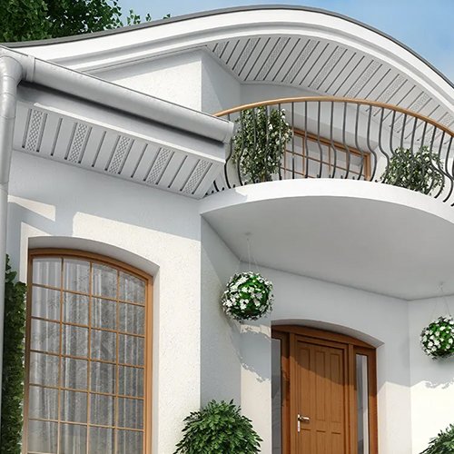 The PVC soffit system offers a practical, durable, and low-maintenance alternative to traditional wood and metal soffits. Designed for both functionality and aesthetics, it features a semi-gloss surface that mimics natural wood grain, complementing popular joinery colors. The innovative “click” system and enhanced panel rigidity ensure quick, easy, and reliable installation. Resistant to harsh weather conditions and biological corrosion, it requires minimal upkeep. Thoughtfully designed perforations provide effective ventilation while preventing insects like wasps, hornets, and bees from entering. Additionally, the system allows homeowners to integrate lighting, conceal wiring, and extend the lifespan of roof structural elements. Ideal for roofs, carports, terraces, and arbours, it ensures a polished, long-lasting finish while enhancing overall protection and durability.