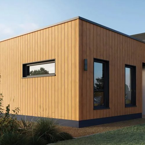 An excellent alternative to wooden facades, Fronto comes in five wood-inspired colors. Thanks to modern thermal printing technology, the panels mimic natural wood with unique, non-repeating grain patterns.