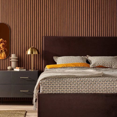 Linerio panels come in three styles, each with different slat widths and depths. They are available in three shades: Natural, Mocca, and Chocolate. Made from polystyrene with a hot stamp print, these panels are lightweight, durable, and 100% recyclable. They are easy to clean and can be installed in busy areas like hallways, workspaces, and kitchens.