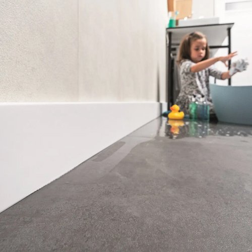 Designed for high resistance to impact and moisture, these skirting boards are ideal for even the most demanding environments, including kitchens and bathrooms. Installation is simple and efficient, as they are directly glued to the wall using mounting adhesive, ensuring a secure and long-lasting fit.